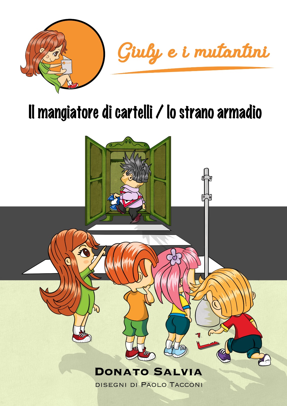 Continua la serie di avventure di Giuly con i suoi amici Mutantini. Questa volta dopo aver imparato i cartelli stradali e delle piccole informazioni del codice della strada, si imbatteranno in un mangiatore di cartelli. Nel secondo racconto finalmente Giuly conosce le origini e la storia dei Mutantini andando attraverso un armadio a casa loro. Libri di semplice lettura, questi due racconti conducono il bambino a scoprire il codice della strada e le stagioni.